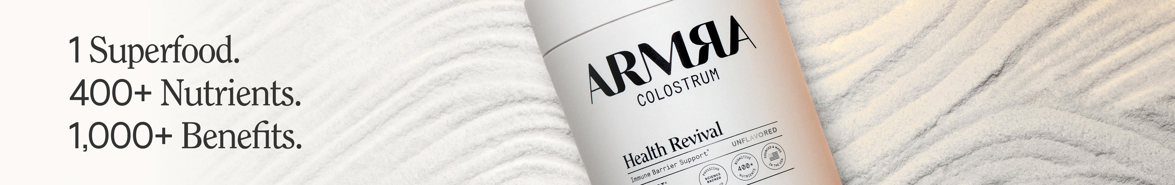 When you take colostrum you fuel your body with potent prebiotics that support your microbiome, a host of peptides and antibodies that strengthen your immune barriers, and dozens of antioxidants and bioactive molecules that support cellular pathways throughout your body, for synergistic revival of your whole body health.